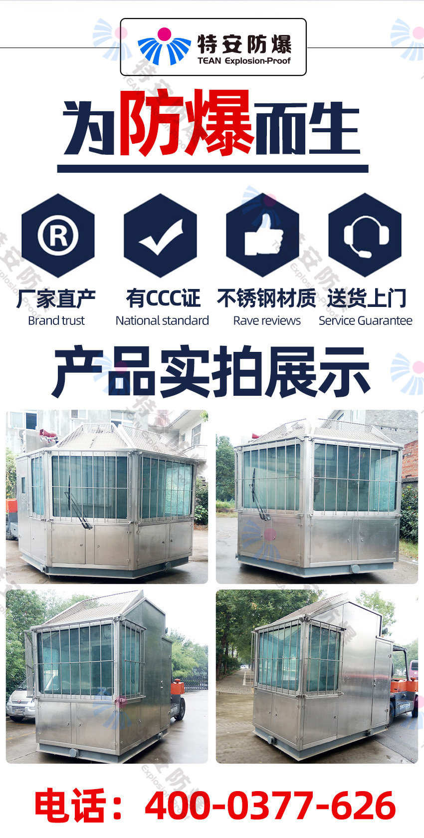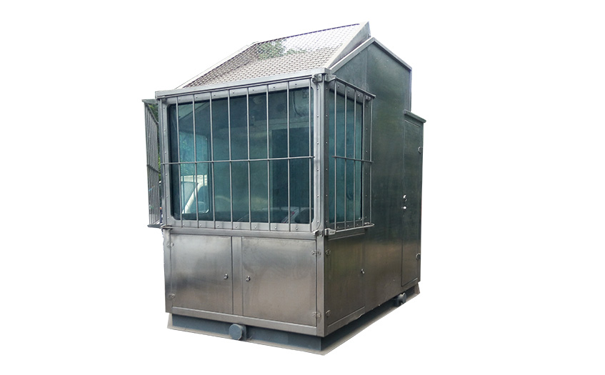 7.房體為不銹鋼材質(zhì),底座為普通鋼材,操作臺為不銹鋼結(jié)構(gòu),防爆電控箱,采用夾膠玻璃,頂層帶有可翻轉(zhuǎn)的防護(hù)不銹鋼絲網(wǎng),注意必須防水,前部和四周玻璃處均設(shè)安全防護(hù)欄。所有玻璃均安裝百葉窗(頂部除外)。